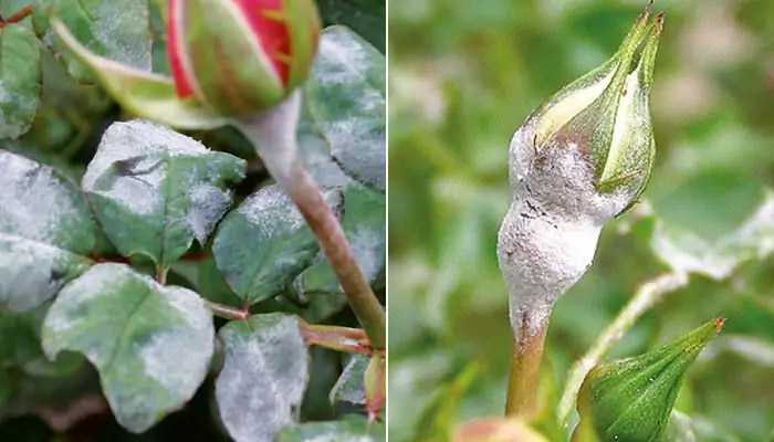 • 흰가루병: 장미의 잎과 줄기에 하얀 가루 같은 곰팡이가 생기며, 주로 습도가 높고 통풍이 잘 안 되는 환경에서 발생합니다.